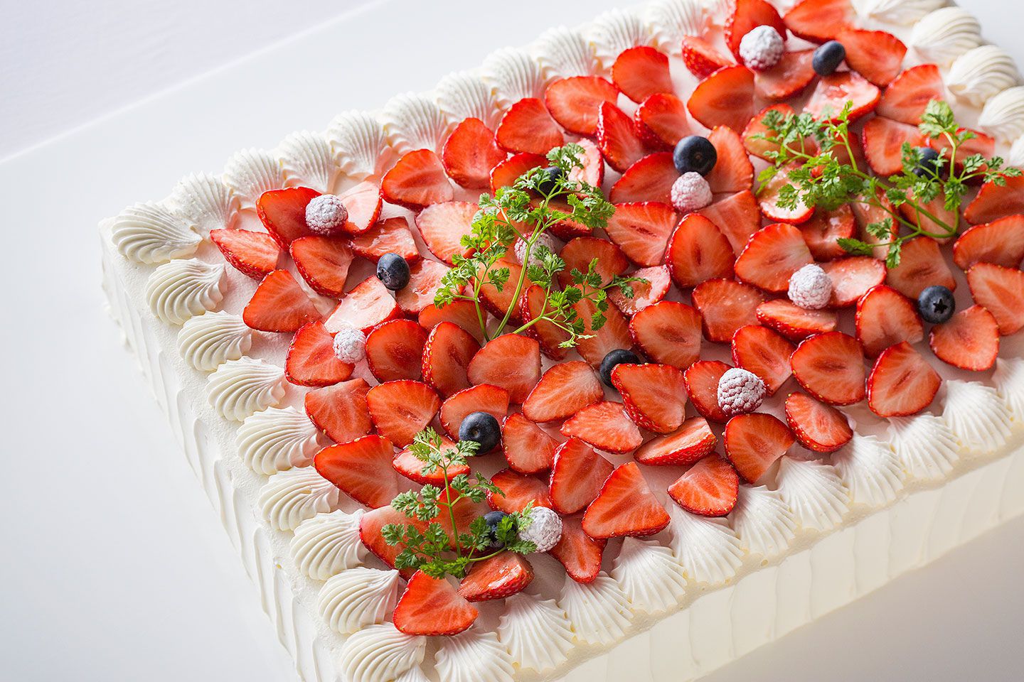季節のフルーツを使ったアニバーサリーショートケーキ。