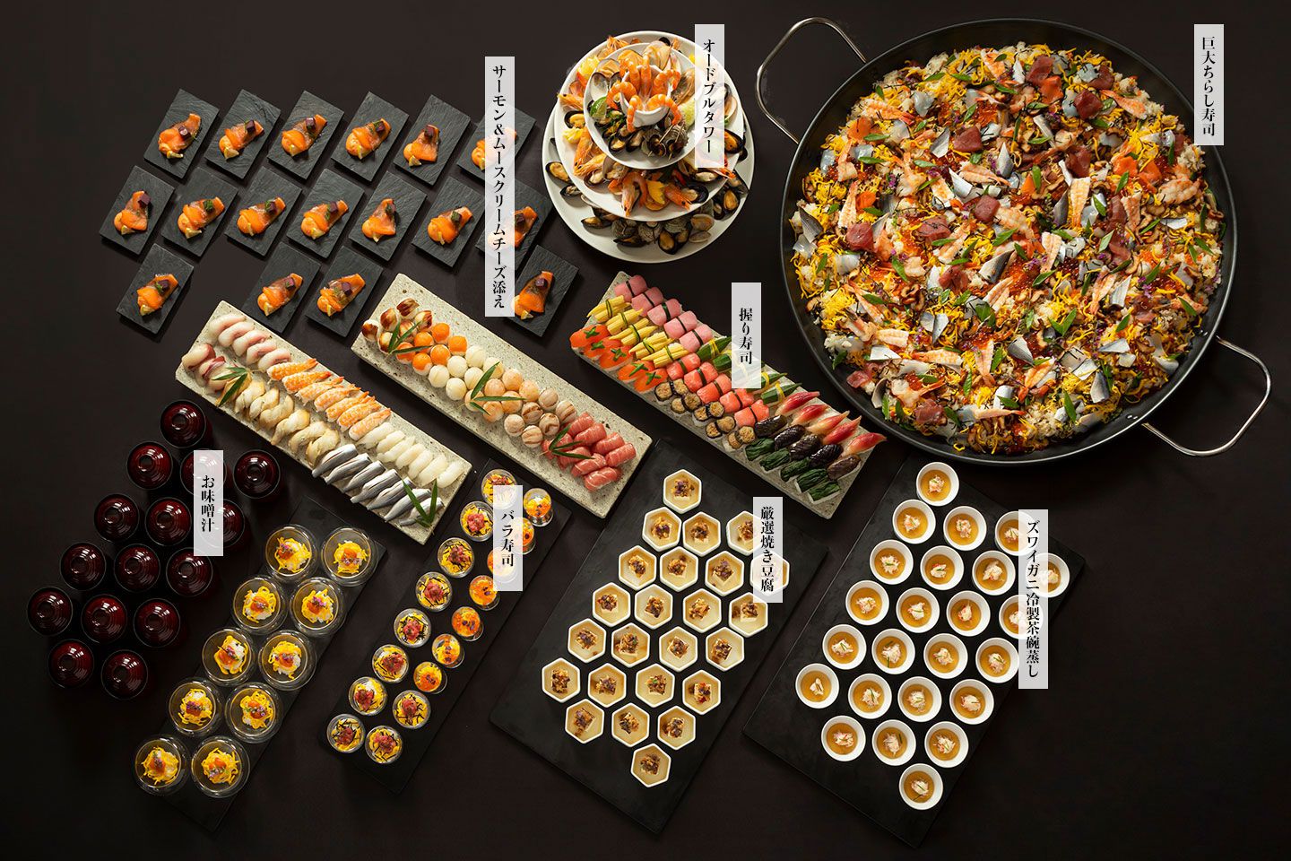 - 【巨大ちらし寿司・寿司buffet・オードブルタワー・一品料理】これらがセットで